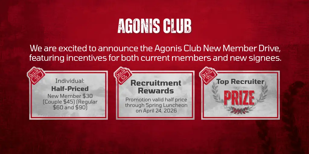 This promotion is valid through our Spring Luncheon on April 24, 2026. New members can join online at: https://www.agonisclub.org/